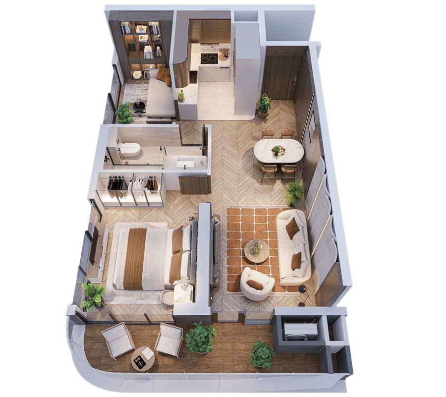 1. Căn Hộ 1PN 40m² – “Studio Suite”: Thiết Kế Tối Giản, Chức Năng Xa Xỉ