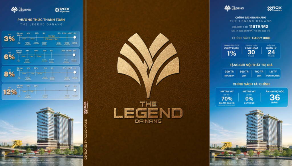 The Legend Danang – dự án căn hộ cao cấp ven sông Hàn do ROX Signature phát triển – đang tạo sức hút lớn nhờ chính sách thanh toán linh hoạt, đặc biệt gói vay không lãi suất trong 24 tháng hợp tác cùng Vietcombank. Với vị trí đắc địa tại lô A20, Võ Văn Kiệt, quận Sơn Trà, dự án mang đến 800 căn hộ view panorama, khách sạn 5 sao Accor và tiện ích vượt trội như hồ bơi vô cực 1.000 m². Chính sách này không chỉ giảm gánh nặng tài chính mà còn đảm bảo an toàn pháp lý, giúp khách hàng dễ dàng sở hữu tài sản tăng giá 12-18%/năm (theo CBRE Q3/2025). Bài viết phân tích chi tiết gói hỗ trợ, dựa trên hợp đồng mẫu và phản hồi từ ngân hàng, để bạn tự tin đầu tư vào biểu tượng mới của Đà Nẵng.